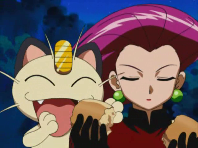 So, when Giovanni finally authorizes her instructor to place her with James, Jessie is unsure of him at first, thinking he's going to be another useless partner. Adding a random, insistent talking Meowth to the mix seems like adding insult to injury--Giovanni has little use for the ingratiating little creature, so he saddles Jessie and James with it (much to Jessie's consternation).
