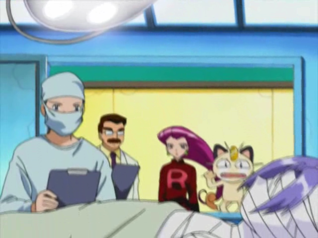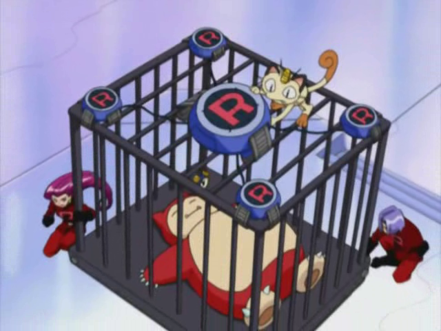 James ends up in the hospital, heavily bandaged and in critical condition. Though he is out of commission, Jessie and Meowth plan to go ahead with the last Team Rocket training exercise, breaking into a secure Pokémon lab to steal a rare red Snorlax.