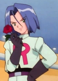 In battle during the Kanto and Orange Islands seasons, James favors Pokémon who provide enough cover and distraction for him or his team to get away or for attacks to be more damaging. Indeed, most of his choices, even though he works for the "bad guys," look more like heroic choices...as if he can't quite bring himself to be as dastardly as Team Rocket would have him be. Also, his Pokémon's first evolutions generally seem deceptively less powerful, until they evolve the second time! (Thinking primarily of Magikarp and Gyarados here, though Koffing and Weepinbell sort of fall into this category, too.) Note that James also collects more Pokémon than Jessie even in the first two seasons of the show, and all his Pokémon evolve under his care; he is actually quite nurturing and gentle, which is pleasantly surprising in a male character.