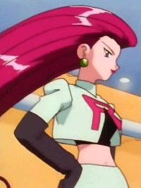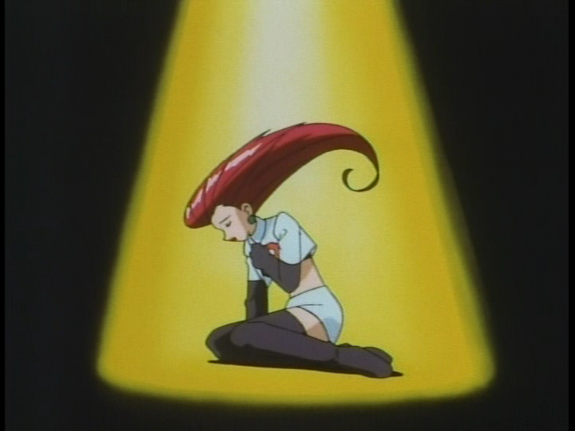 During the Kanto and Orange Islands seasons, Jessie favors Ekans and Arbok, who are just as venomous as she is; her solitary focus is getting back in Giovanni's good graces (which means bringing him the rarest, most amazing Pikachu she and James have ever come across). But there again, her particular quirks lead to self-sabotage again and again; she's unsuccessful even at catching Pokémon to help her defeat and capture Pikachu. (The other Pokemon she actually catches during Kanto/Orange League, Lickitung, is caught by accident rather than design.) She is a laughably tragic would-be villain, trying so hard to be "bad," to be a successful criminal, and failing miserably.